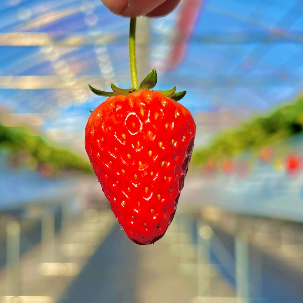 いちごを摘み取り、その場で味わう贅沢。もぎたてのいちごは甘く、香り高く、口に入れた瞬間、果汁があふれ出し、あなたを幸せな気分に。