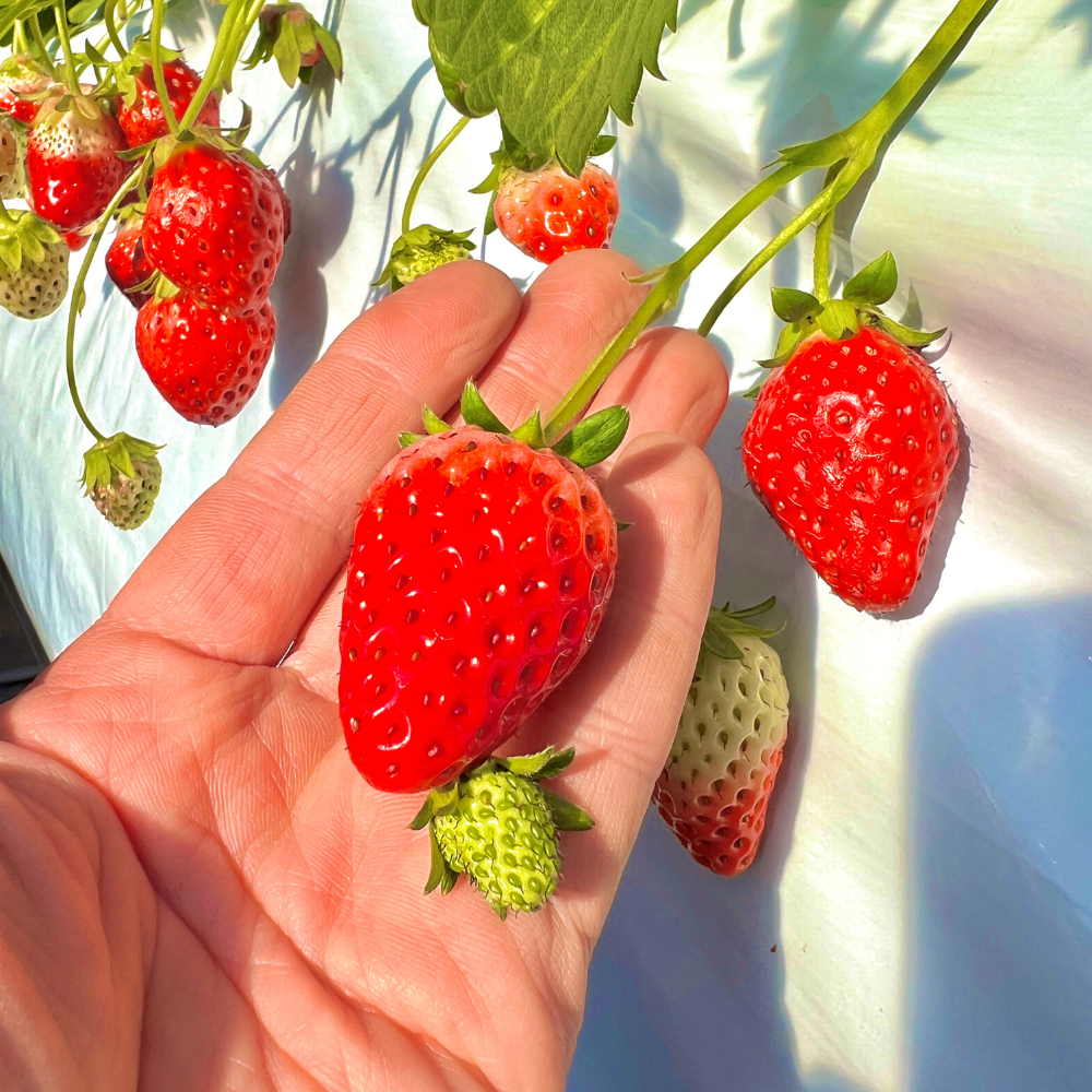 手に取るイチゴは甘く、香りや色も鮮やかで、日常を忘れさせてくれるワクワク感があります。