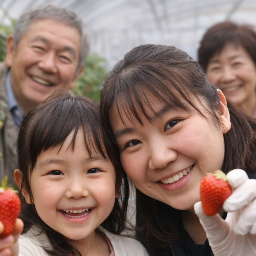 家族が無理なく集まれる場所だからこそ、イチゴ摘みの時間が、いっそう温かく、思い出深いひとときになります。