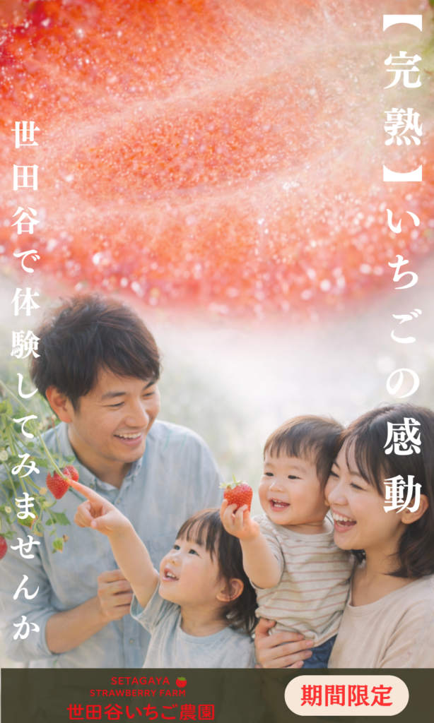 世田谷の農家が家族で楽しめる【いちご狩り】で、笑顔があふれる思い出作りをお手伝いします。