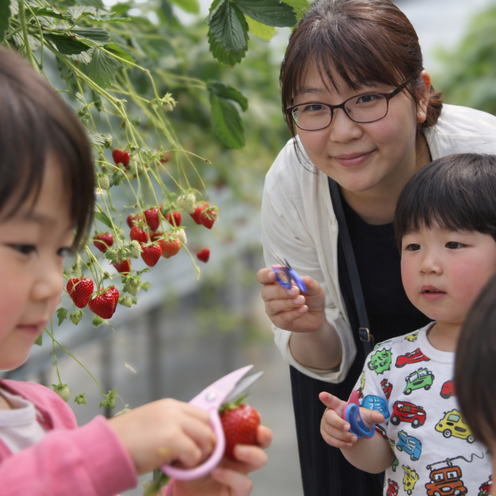 いちご狩りを通して、食べ物の大切さや、いちごを作ってくれる人への感謝の気持ちも育つと農園は考えております。