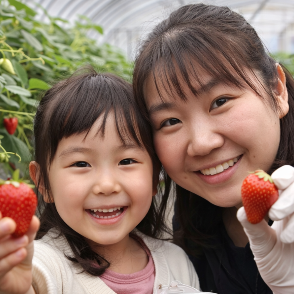 家族みんなで笑顔になりながら、イチゴ摘みの楽しさを心ゆくまで味わってください。
