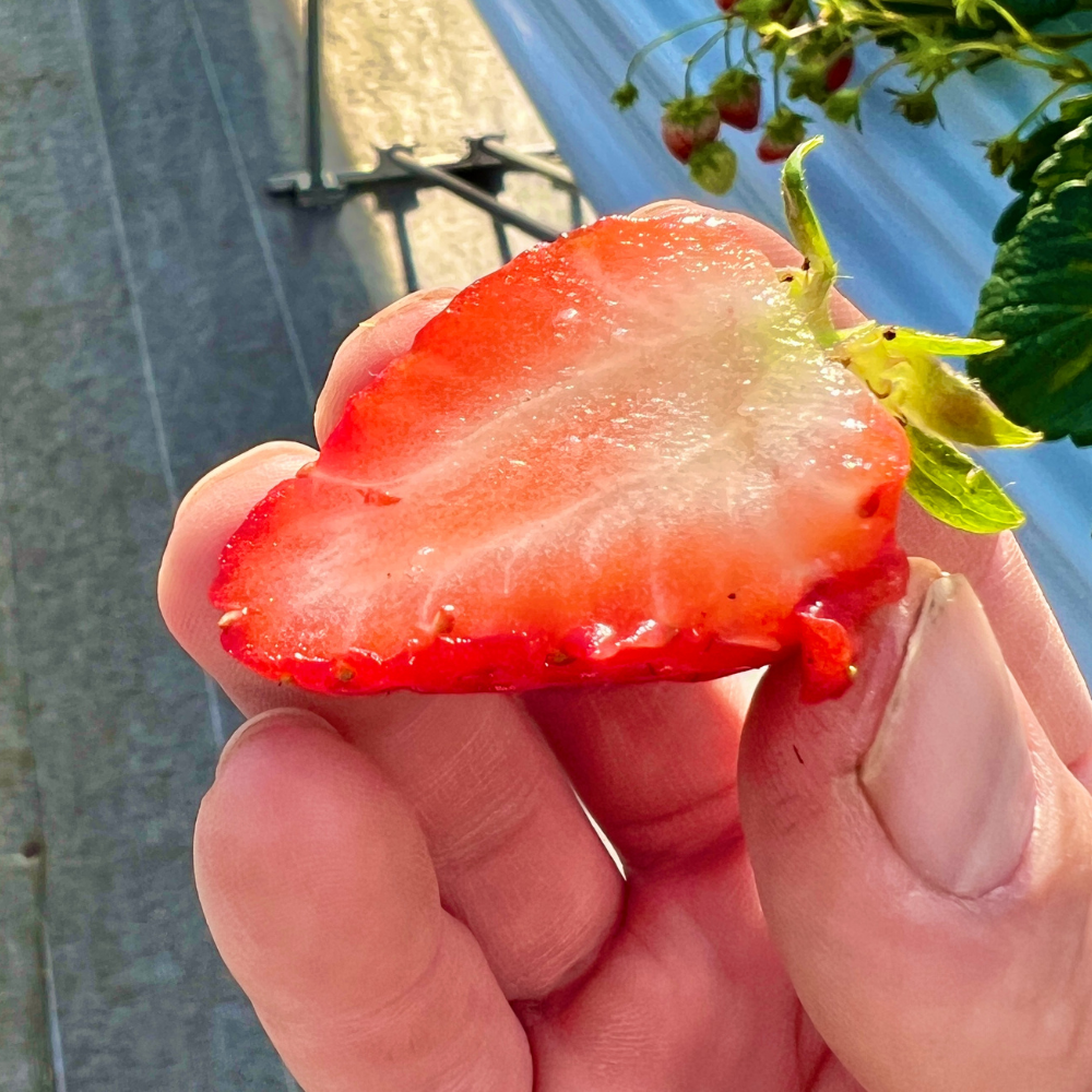 その中で育ったいちごは、実がしっかり締まり、甘みをたっぷり蓄えます。